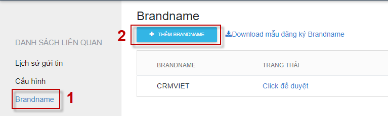Bước 2: Chọn Brandname -> THÊM BRANDNAME