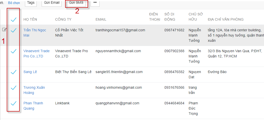 3.3.1 Gửi SMS cho nhiều liên hệ