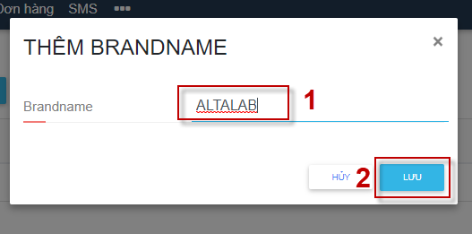 Bước 3: Nhập tên Brandname -> Nhấn nút Lưu