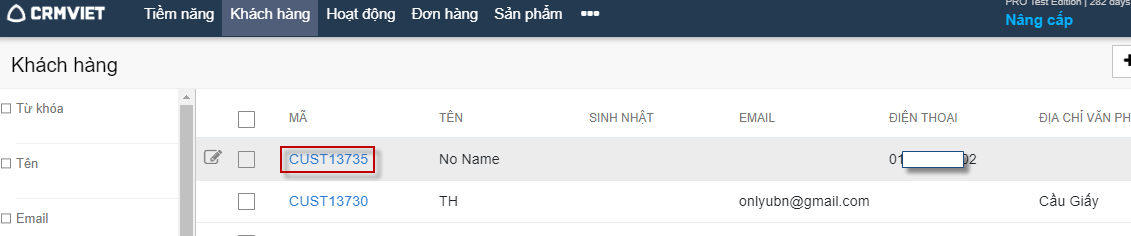 Bước 1: Tiềm năng -> Click vào tên tiềm năng muốn gửi SMS