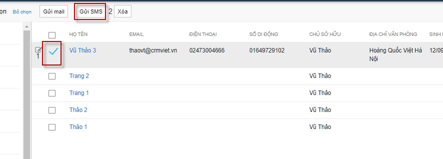 3.3 Gửi SMS cho liên hệ
