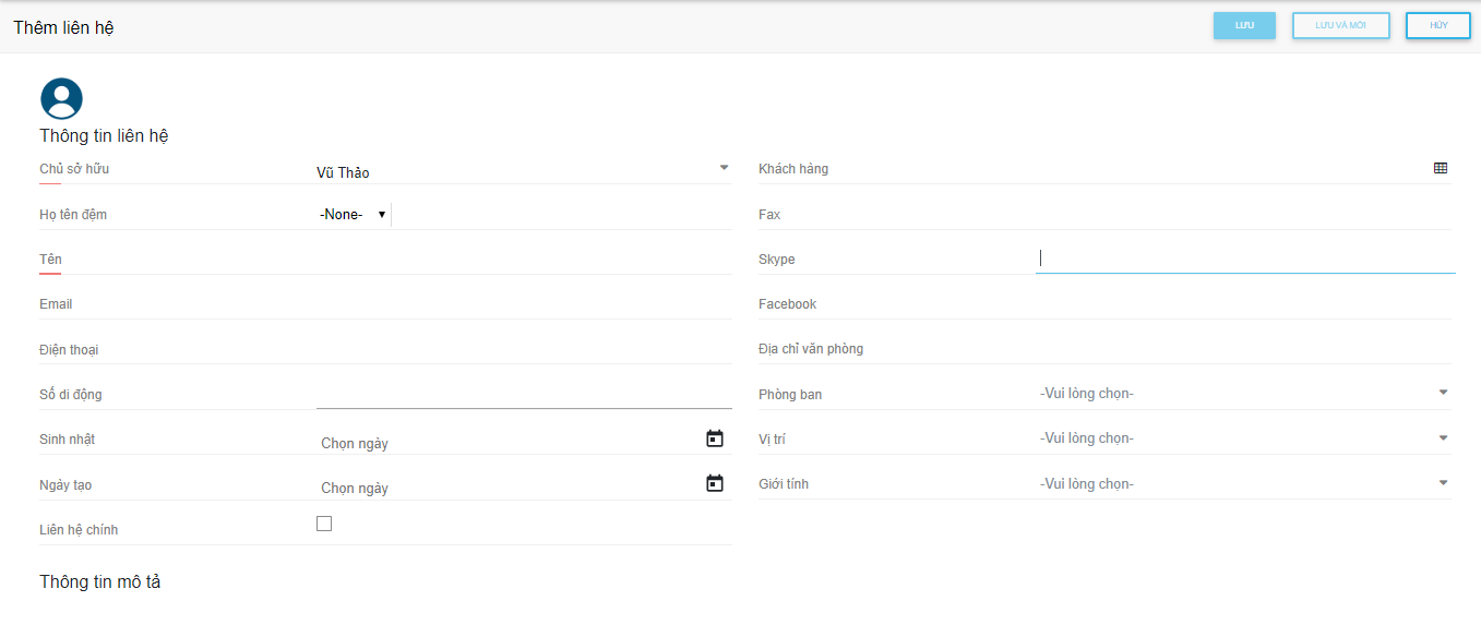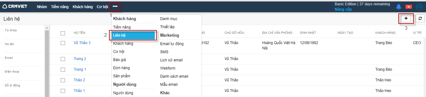 Các bước thực hiển để thêm mới liên hệ