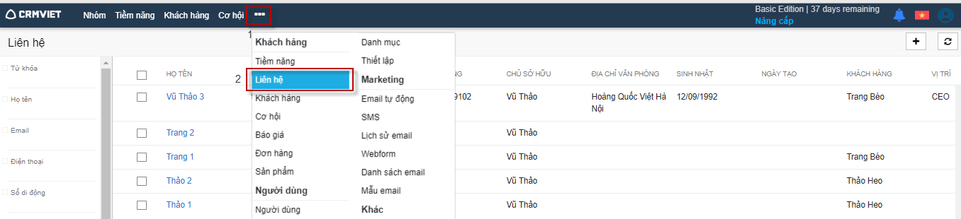 4. Tìm kiếm liên hệ