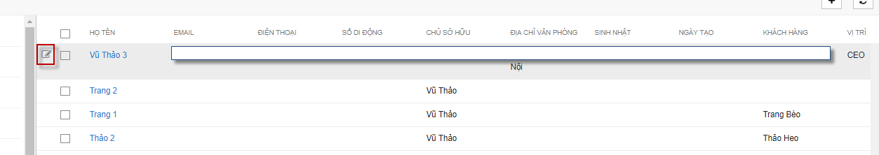 Bước 2: Trỏ chuột đến vị trí của liên hệ cần chỉnh sửa -> Chọn biểu tượng