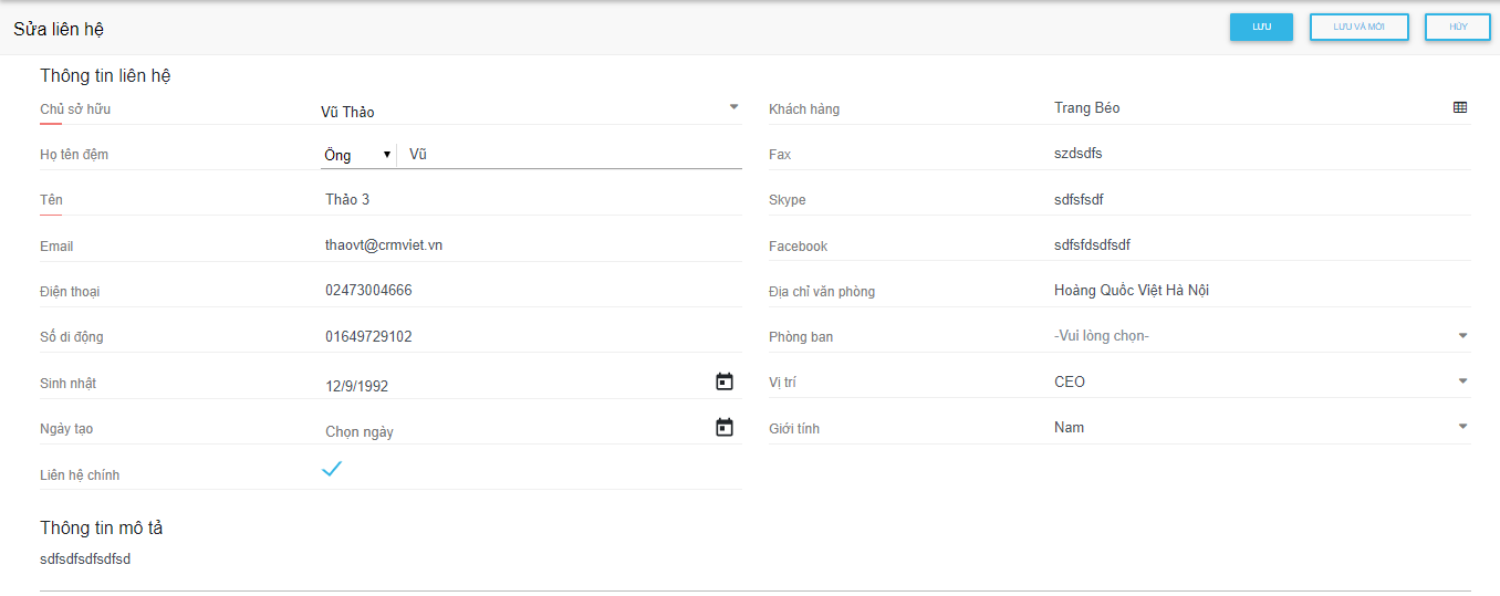 2. Sửa liên hệ