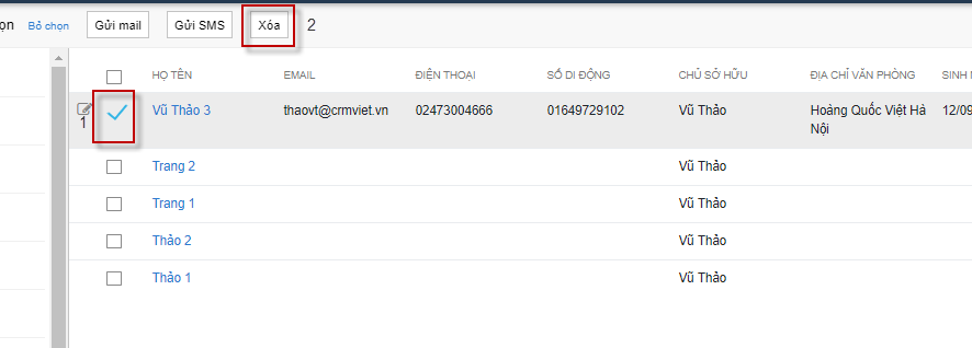 3. Xóa liên hệ