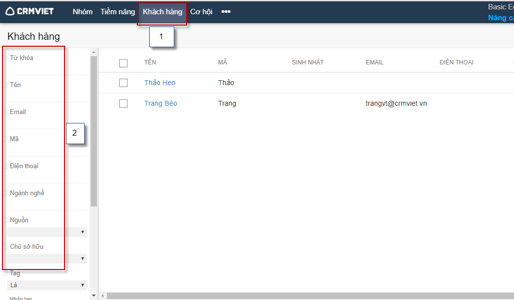 Bước 3: Nhấn nút Lọc để tìm kiếm khách hàng