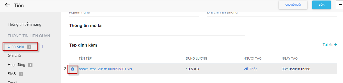 Bước 3: Nhấn nút Xóa để xóa liên hệ khỏi hệ thống