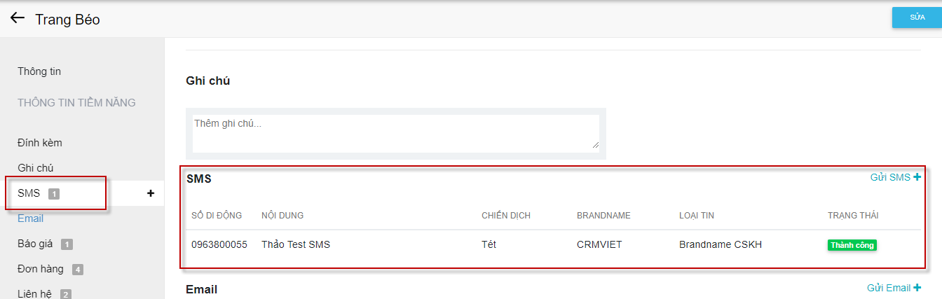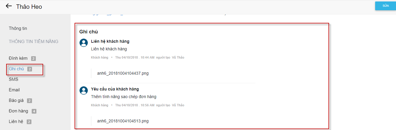 2. Sửa liên hệ