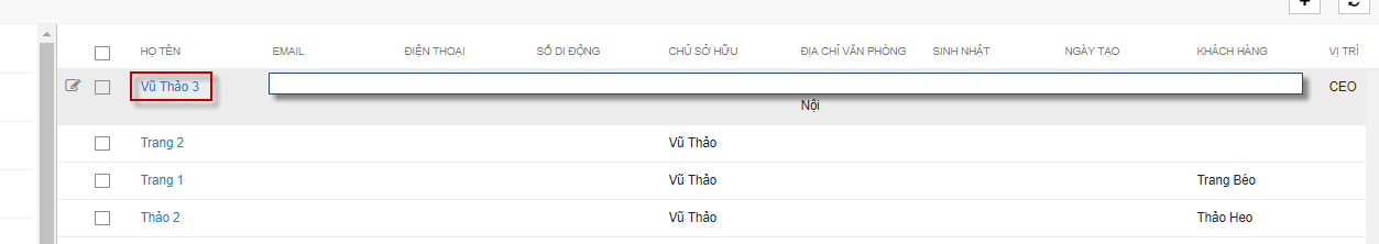 - Nhân nút “Hủy bỏ” để quay trở về màn hình danh sách Khách hàng