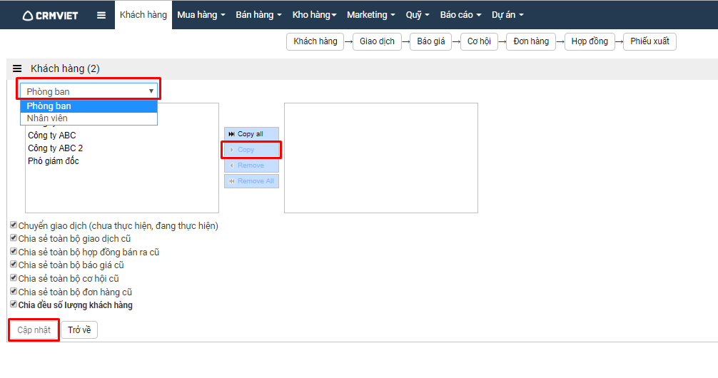 tương ứng nếu muốn chuyển giao dịch( chưa thực hiện, đang thực hiện), chia sẻ toàn bộ hợp đồng bán ra cũ, chia sẻ toàn bộ báo giá cũ, chia sẻ toàn bộ cơ hội cũ, chia sẻ toàn bộ đơn hàng cũ của khách hàng muốn chuyển chủ sở hữu cho chủ sở hữu mới.