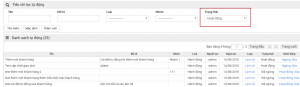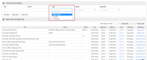 - Tìm kiếm theo trạng thái hoạt động/ngừng -> click tìm kiếm