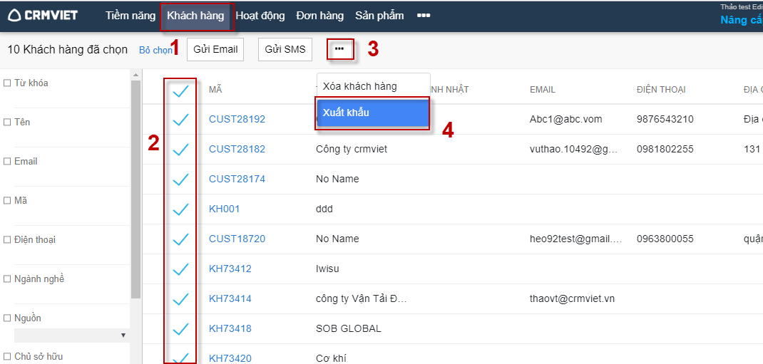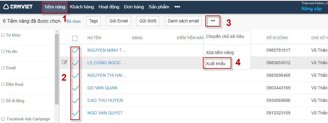 1.2 Xuất khẩu theo danh sách tiềm năng được chọn