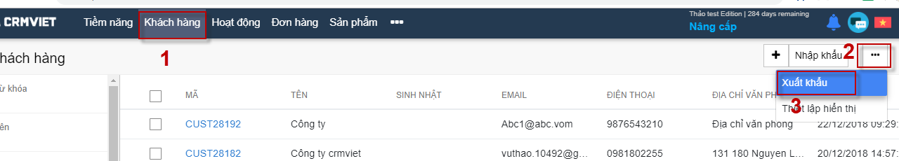 Chọn Khách hàng -> Nhấn vào biểu tượng  -> Xuất khẩu