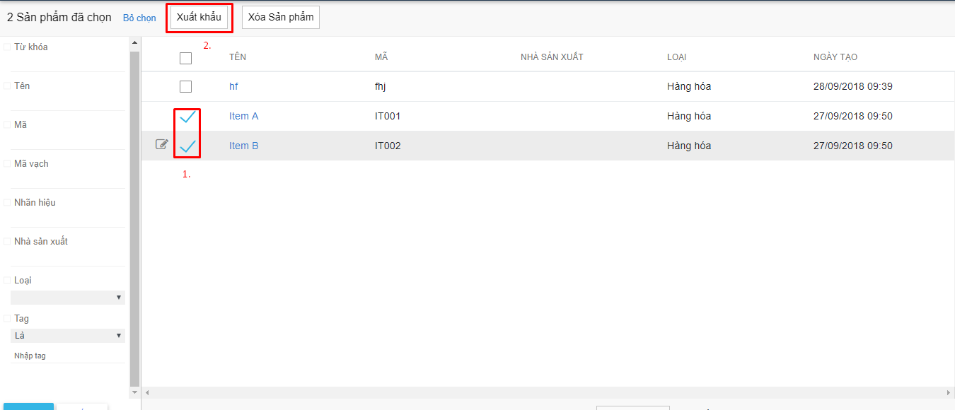 4.2 Xuất khẩu theo danh sách hàng hóa được chọn