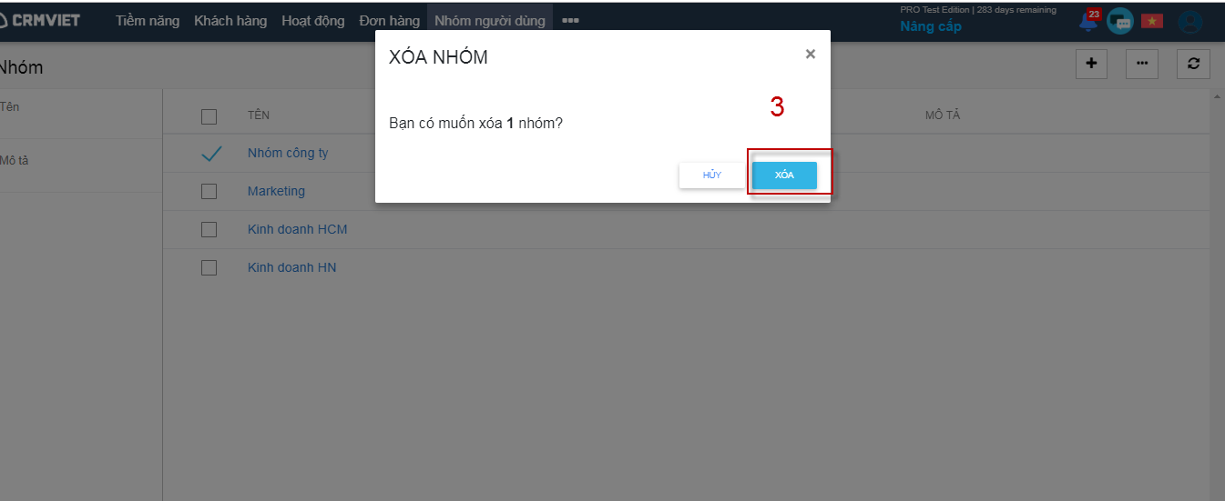 Xóa nhóm người dùng