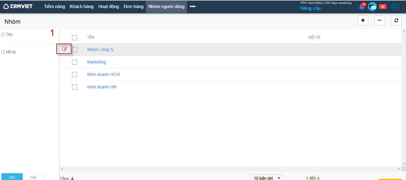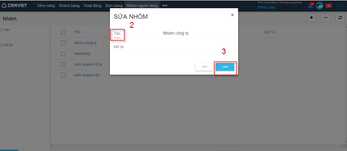 Sửa nhóm người dùng