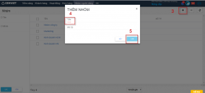 Bước 2: Click  ô   màn hình hiển thị popup như hình  bên dưới. Điền đầy đủ thông tin hợp lệ vào các trường -> Kích button “Lưu” (Save) để lưu mới Nhóm (Group) , hoặc click buton “Hủy” (Cancel) để bỏ thao tác thêm mới và quay lại màn hình danh sách Nhóm (List Group).