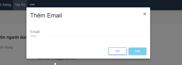 a. Từ Module Danh sách Email –> Kích chọn Thêm Email –> Màn hình hiển thị giao diện như hình 1 –> Nhập Email hợp lệ –> Kích chọn “Lưu” để hoàn tất thêm Email, hoặc Hủy để hủy bỏ thao tác.