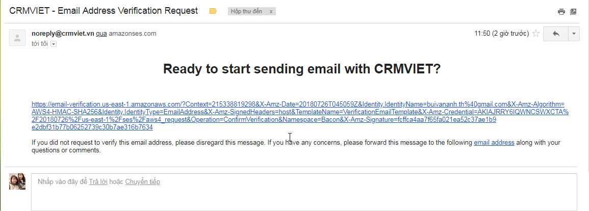 c. Người dùng Check mail để kiểm tra. Mail có dạng như hình 3–> Kích vào đường dẫn sẽ hiển thị trag thông báo verify successful