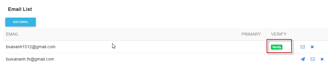 d. Giao diện trang danh sách Email: Mail vừa verify sẽ được chuyển trạng thái như hình 4