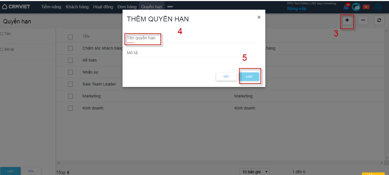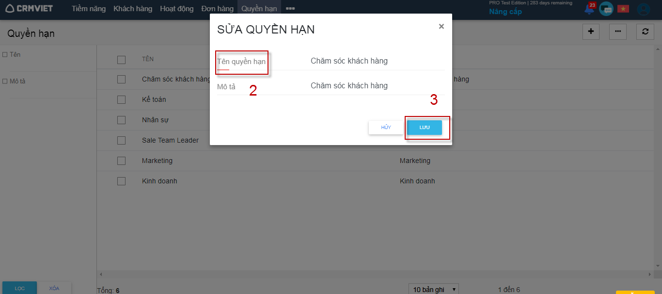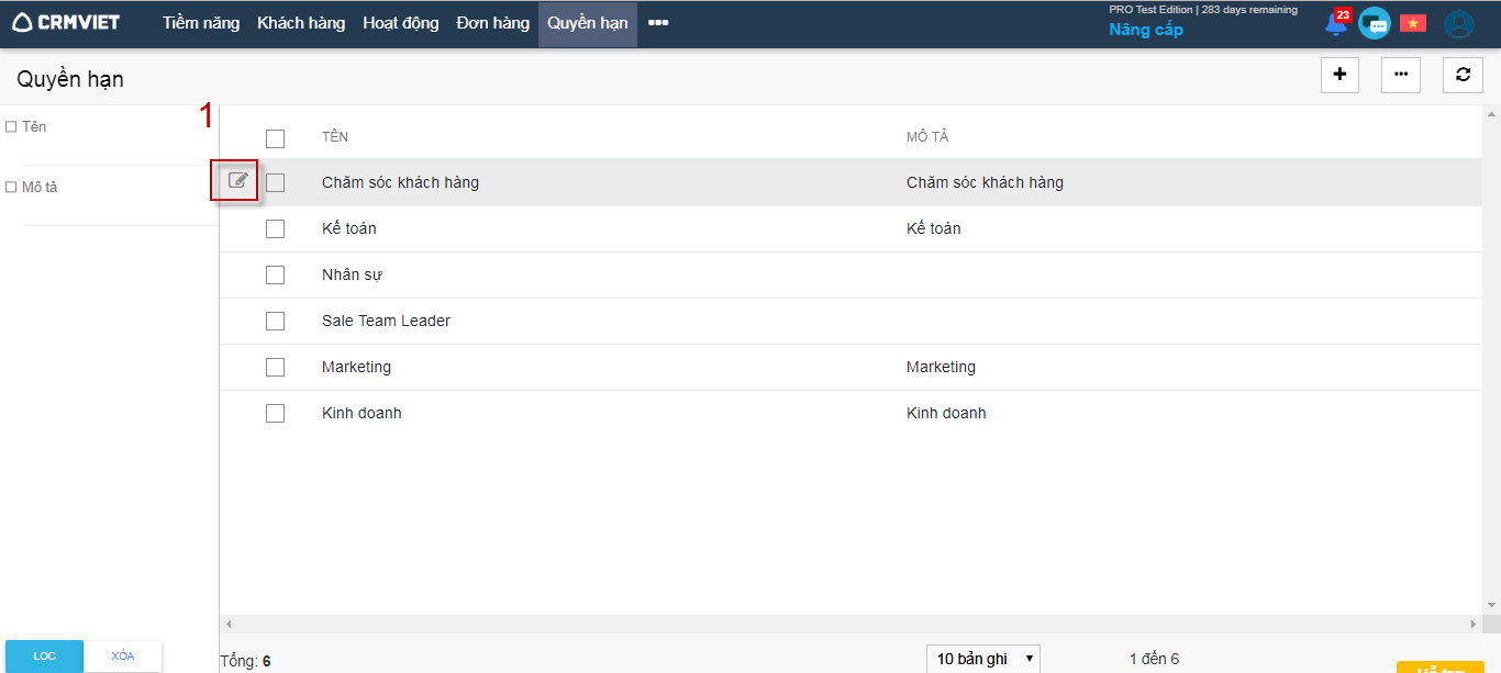 Bước 1: Tại trang danh sách quyền hạn người dùng click nút sửa