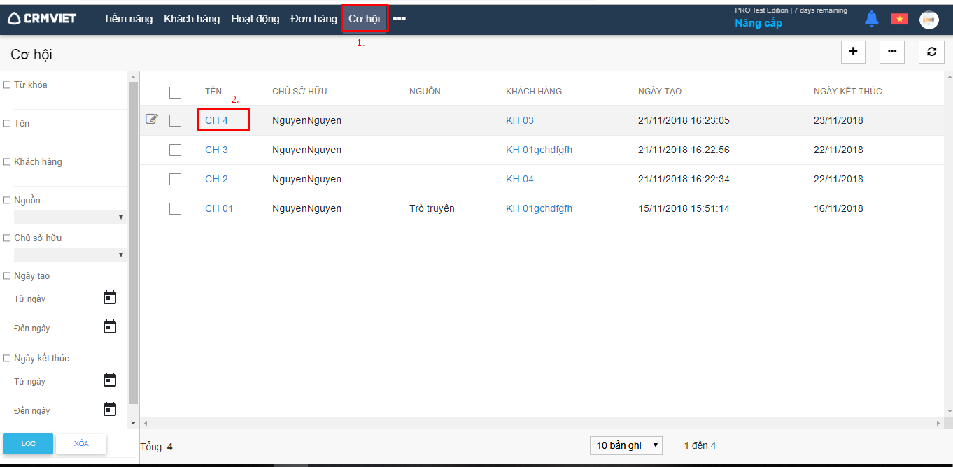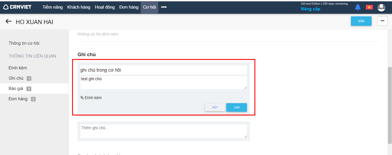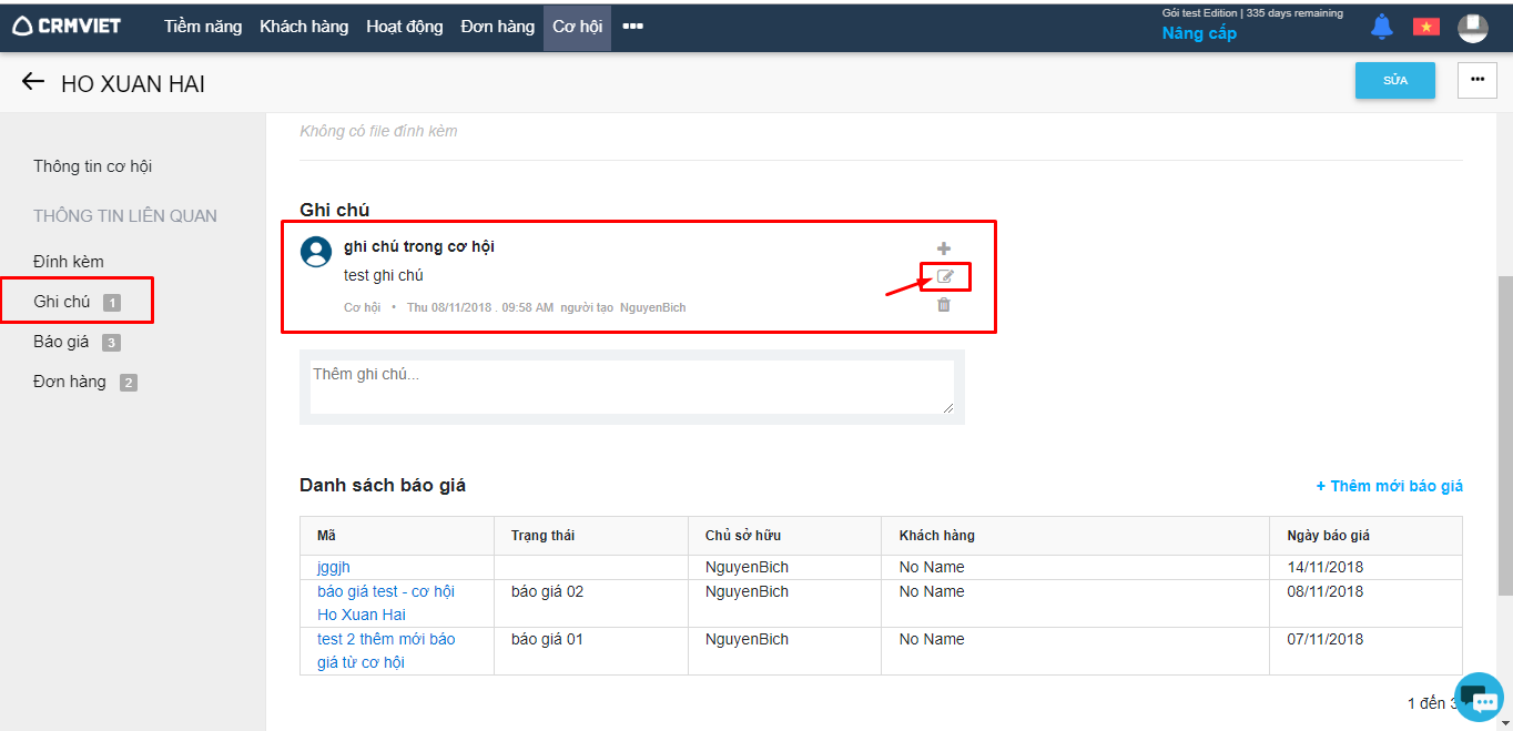 Bước 1: Chọn module Cơ hội -> Chọn Cơ hội cần sửa ghi chú (Hình 1)