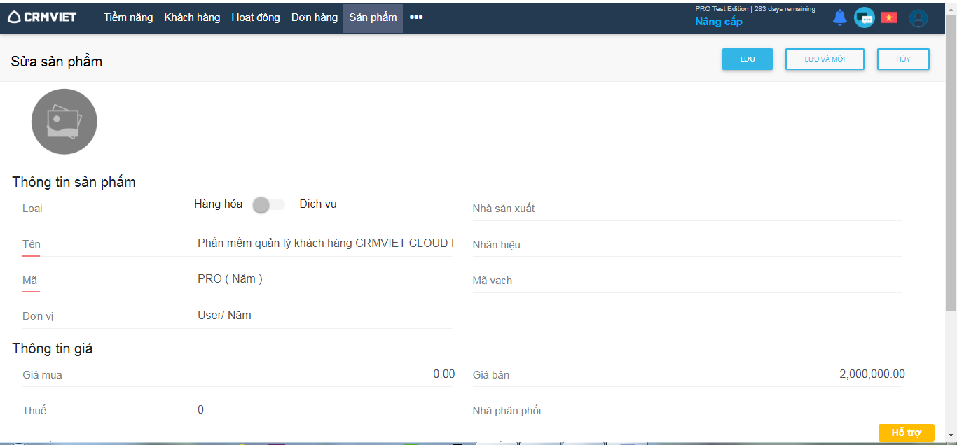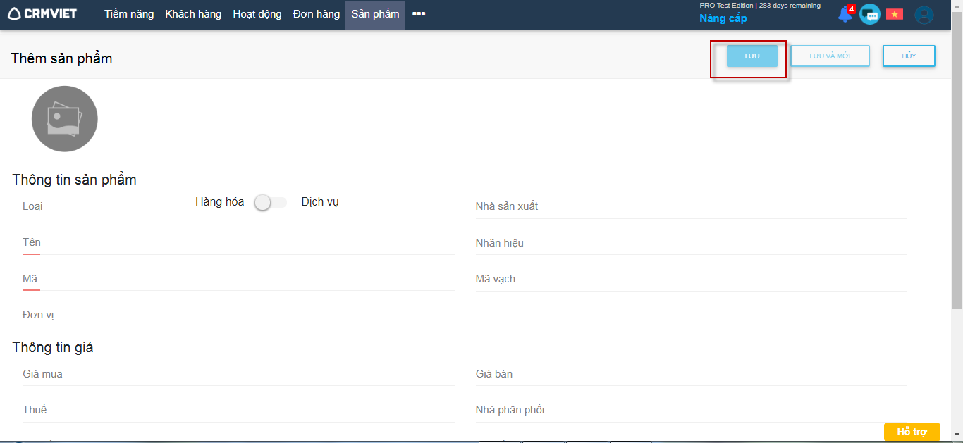 Bước 1: Màn hình hiển thị trang thêm mới sản phẩm. Người dùng điền thông tin hợp lên -> lưu để thêm mới sản phẩm. Hình 2