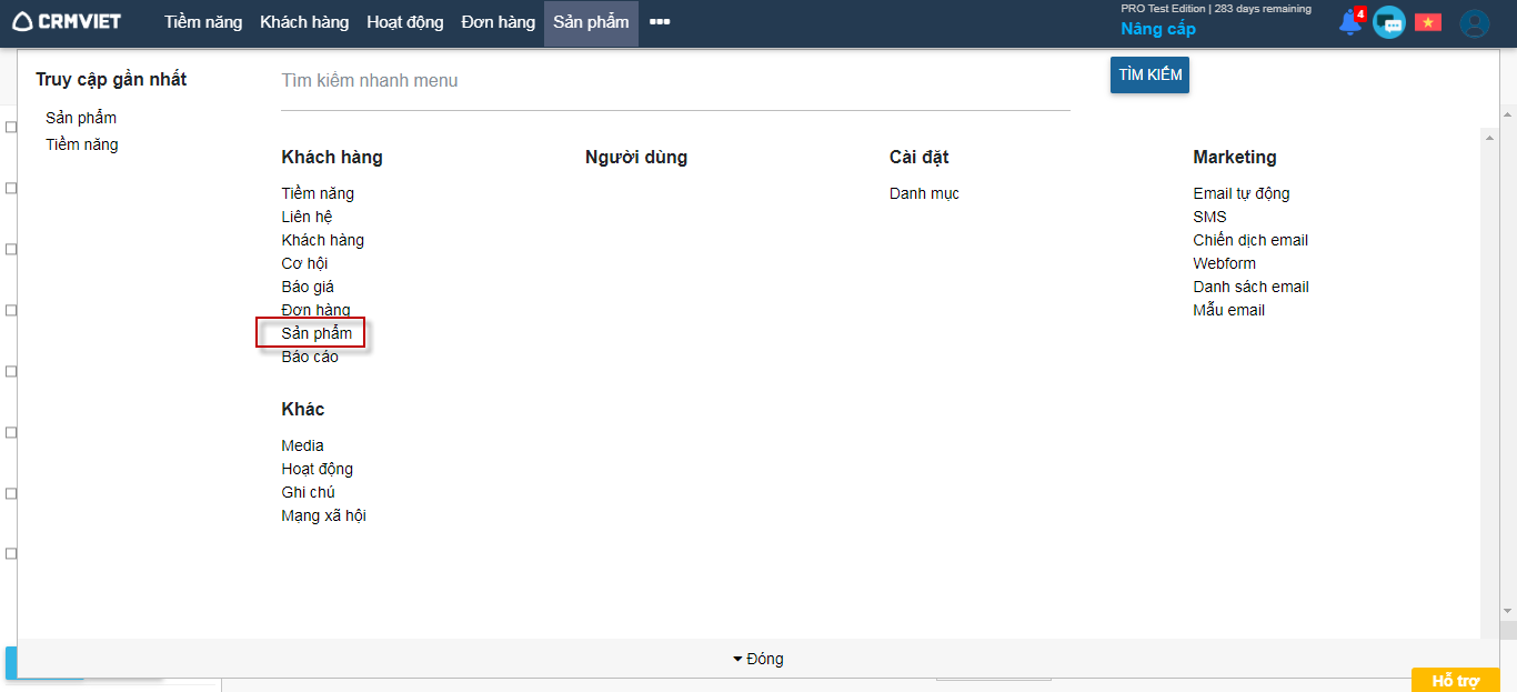 Đăng nhập vào hệ thống Người dùng nhấn “Sản phẩm” trên thành công cụ -> Hiển thị ra danh sách Sản phẩm