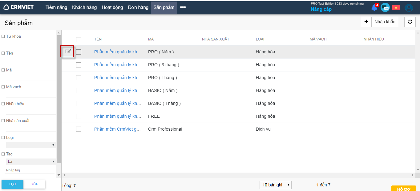 Bước 1: Tại màn hình danh sách sản phẩm, người dùng kích nút sửa. Hình 3